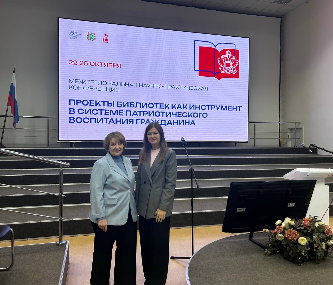 23 октября 2025 года советник директора по воспитанию Киселева А.А. и преподаватель Яворская О.В. приняли участие в Межрегиональной научно-практической конференции «Проекты библиотек как инструмент в системе патриотического воспитания гражданина», посвященной обсуждению актуальных проблем и определению роли библиотеки в патриотическом воспитании молодежи.