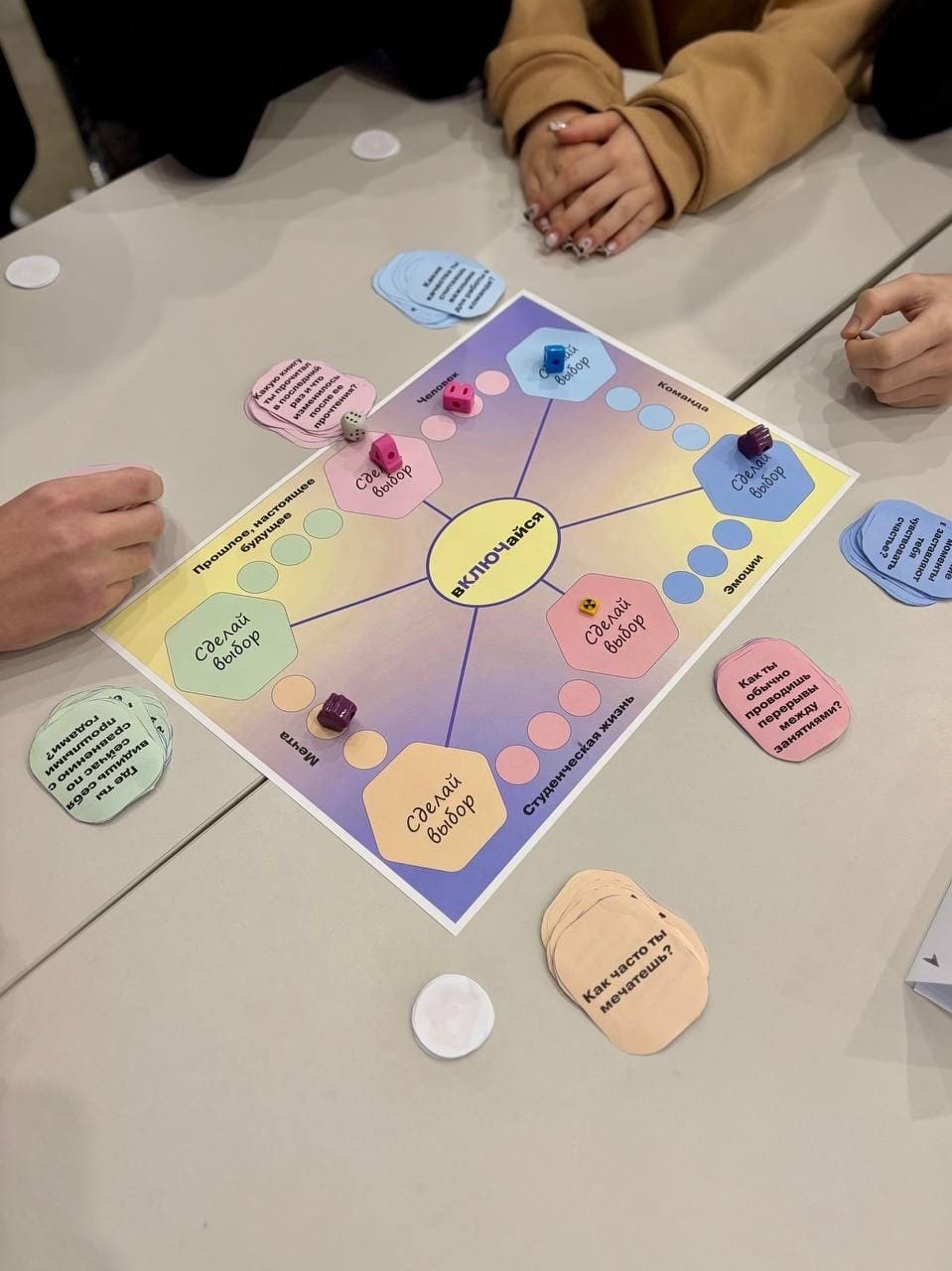 Для знакомства ребят друг с другом была проведена увлекательная настольная игра «вКЛЮЧайся». Кроме того, участники школы разработали план мероприятий Совета Первых на ближайший период.