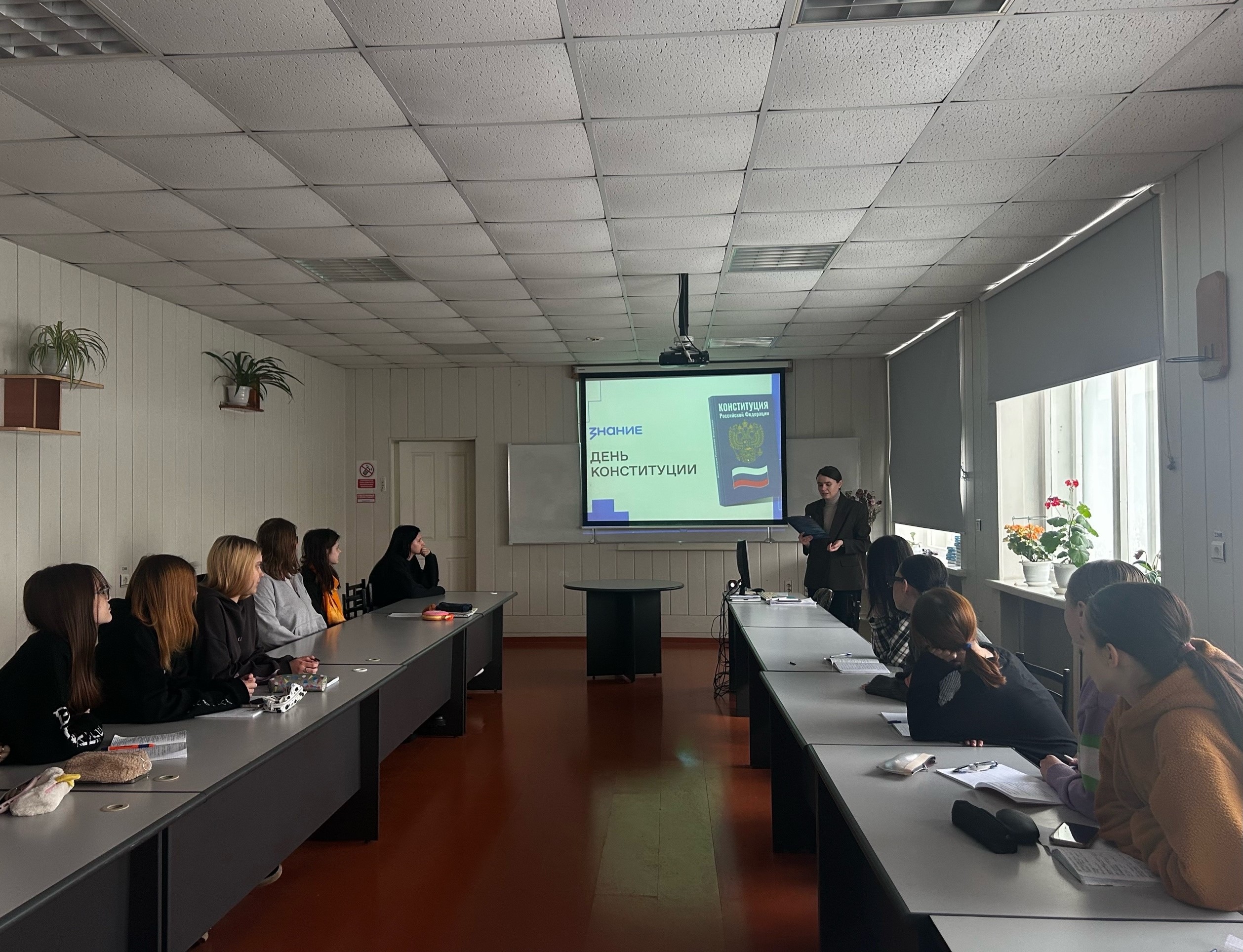 В честь праздника, 12 декабря 2025 года, студенты Томского экономико-промышленного колледжа стали участниками лекции от Российского общества «Знание», а также викторины «Что мы знаем о Конституции?». Ребята больше узнали об основополагающем документе нашей страны, который определяет основные принципы функционирования государства и его институтов.